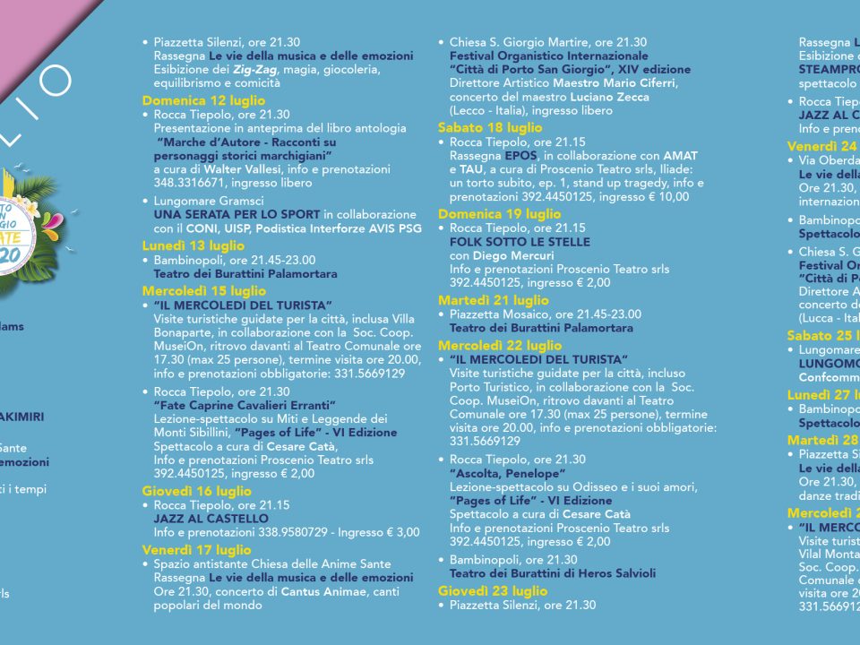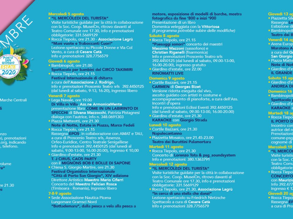 PORTOSANGIORGIO TURISMO Ecco il calendario degli eventi della nostra stagione estiva. Potete scaricarlo in formato PDF andando a questo link: SCARICA LA GUIDA CON IL CALENDARIO […]