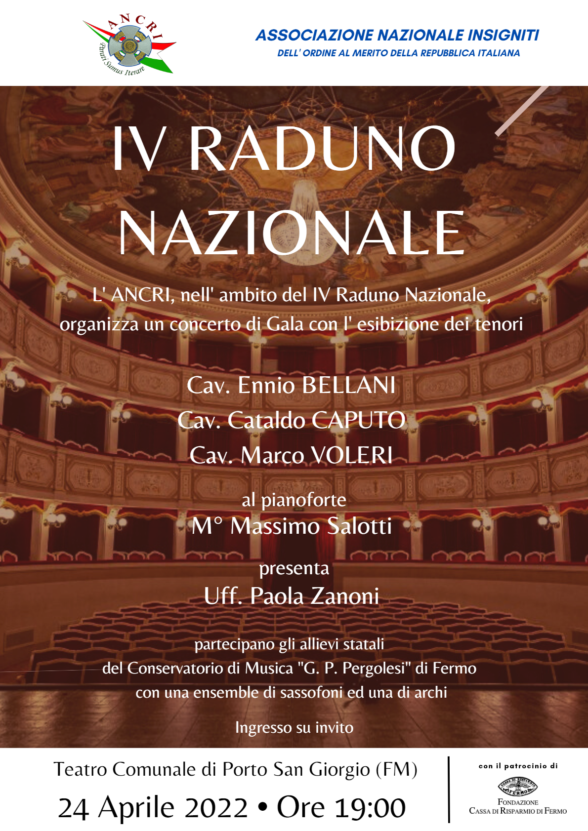 🎼 Domenica 24 Aprile al Teatro Comunale di Porto San Giorgio ore 19:00 l’ANCRI, nell’ambito del IV Raduno Nazionale organizza