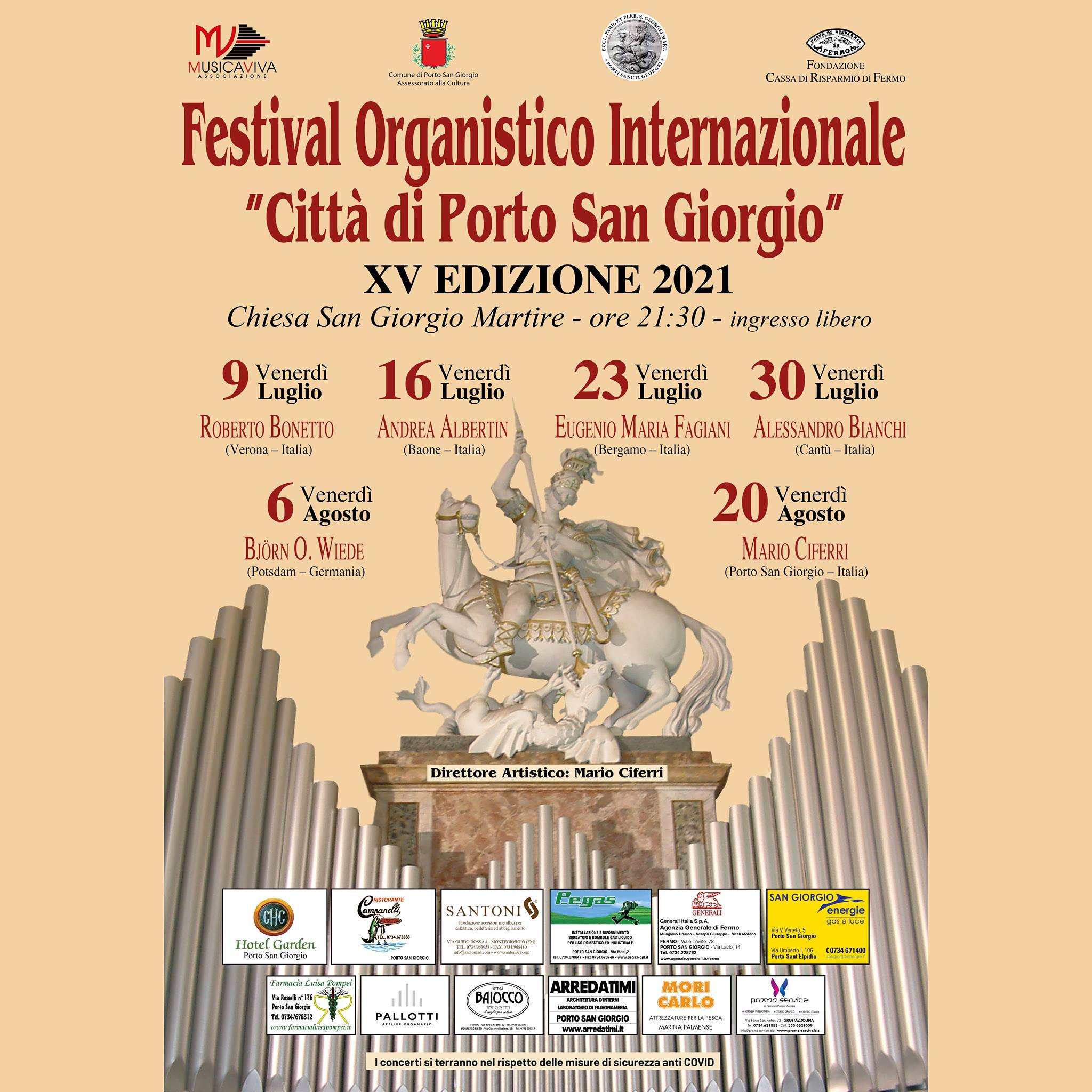 Chiesa S. Giorgio Martire, ore 21.30, Festival Organistico Internazionale “Città di Porto San Giorgio”, XV edizione 2021, Direttore Artistico Maestro Mario Ciferri.