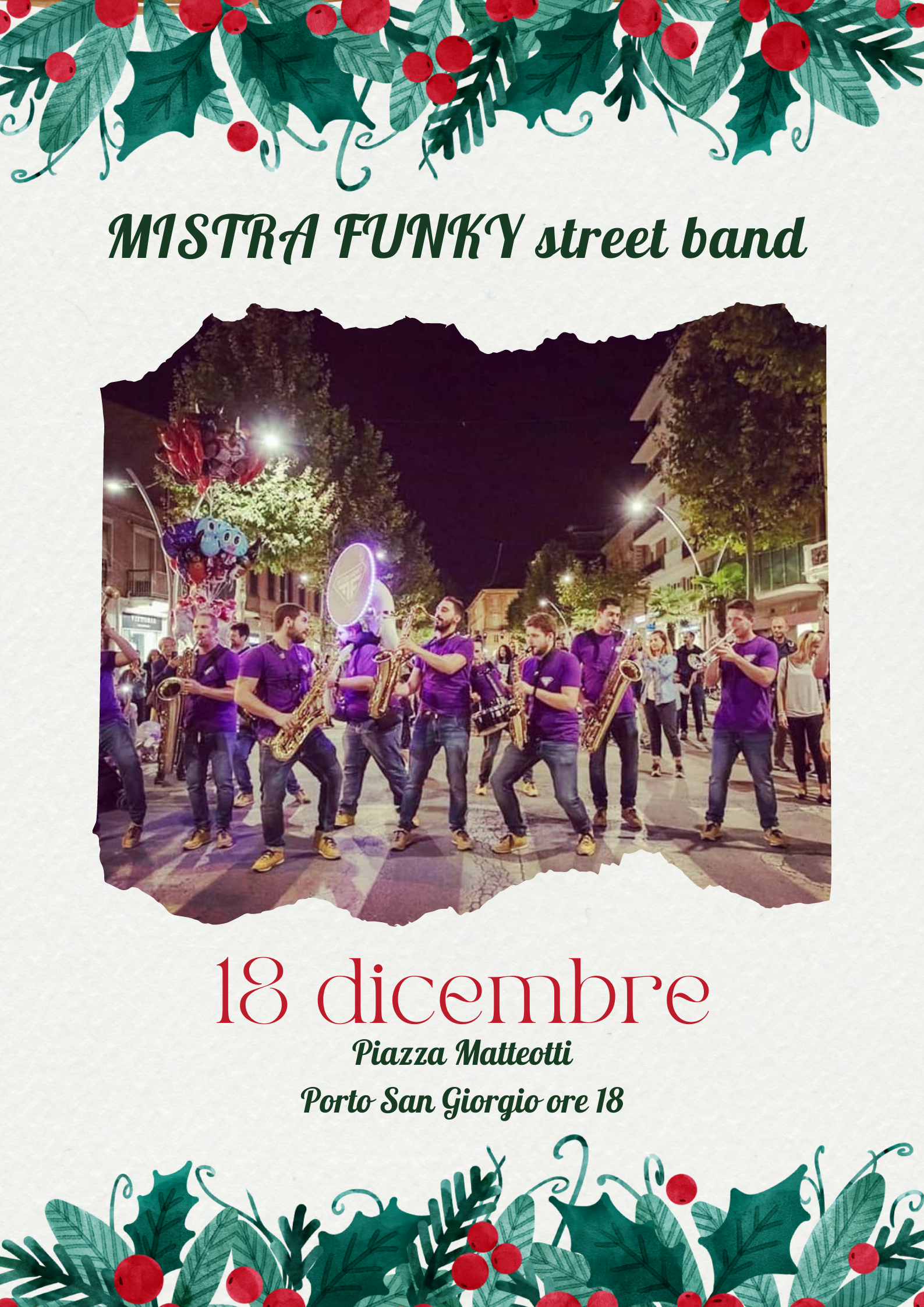 Sabato 18 dicembre in Piazza Matteotti arriveranno i Mistra Funky per un Natale funkeggiante!