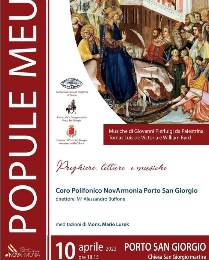 Domenica 10 Aprile presso la Chiesa di San Giorgio Martire alle ore 18:15 “POPULE MEUS”: preghiere, letture e musiche con il Coro Polifonico NovArmonia Porto San Giorgio.