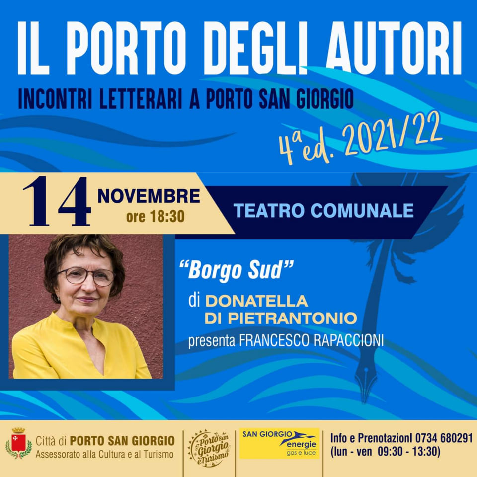 Ore 18:30, IL PORTO DEGLI AUTORI, "Borgo Sud", di Donatella di Pietrantonio. Presenta Francesco Rapaccioni. Per info e prenotazioni 0734680291 (lun-ven 09.30-13.30).