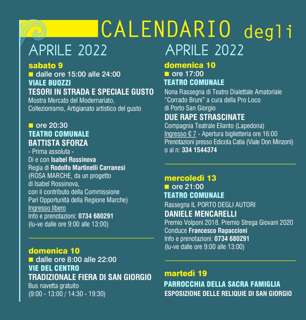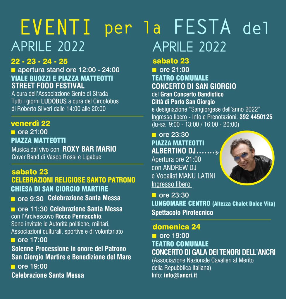 Calendario programmazione Festa del Patrono San Giorgio Aprile 2022