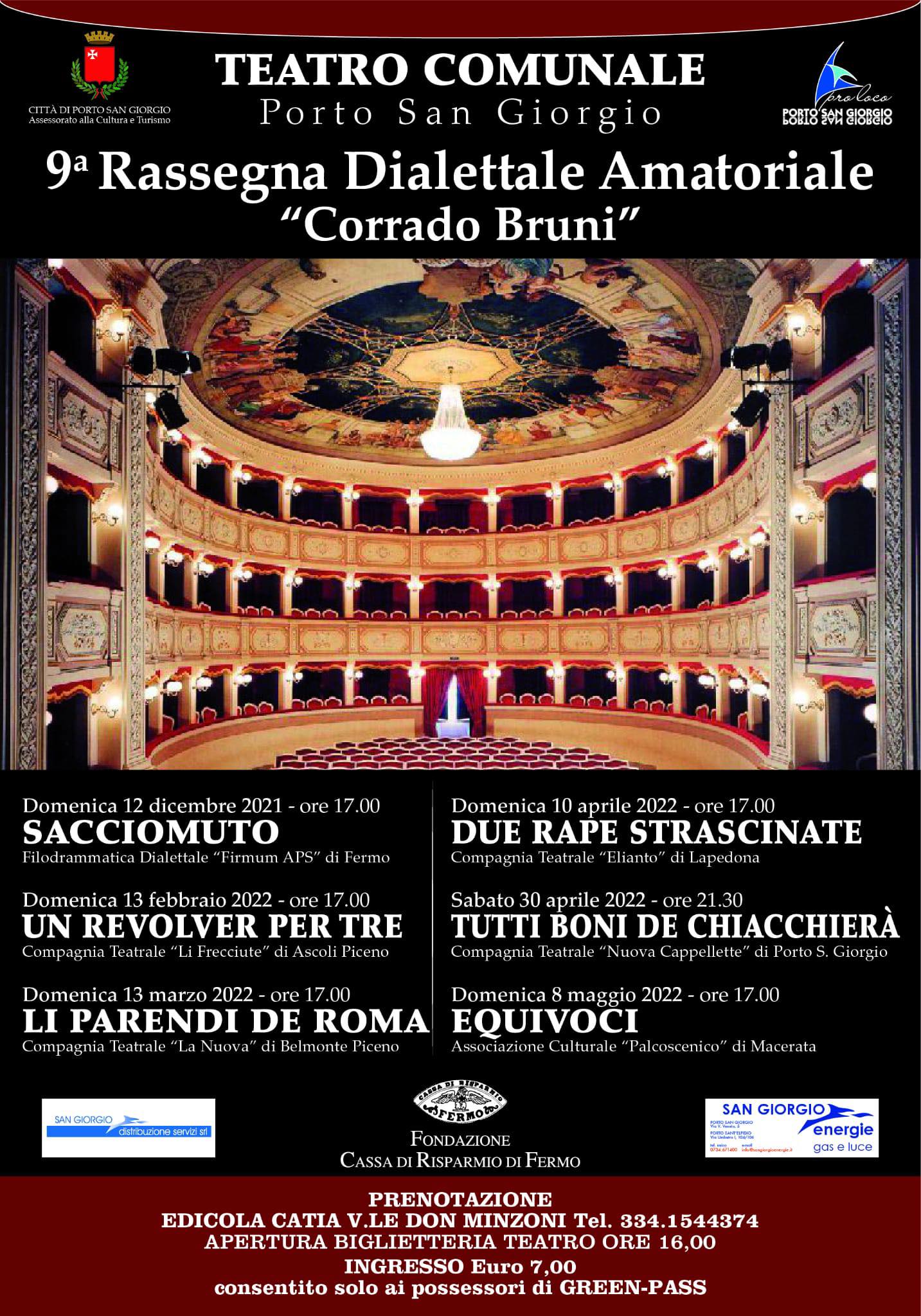 9° Rassegna di Teatro dialettale amatoriale “CORRADO BRUNI”  a cura della Pro Loco di Porto San Giorgio presso il Teatro Comunale.  “SACCIOMUTO” Filodrammatica dialettale “Firmum APS” di Fermo.