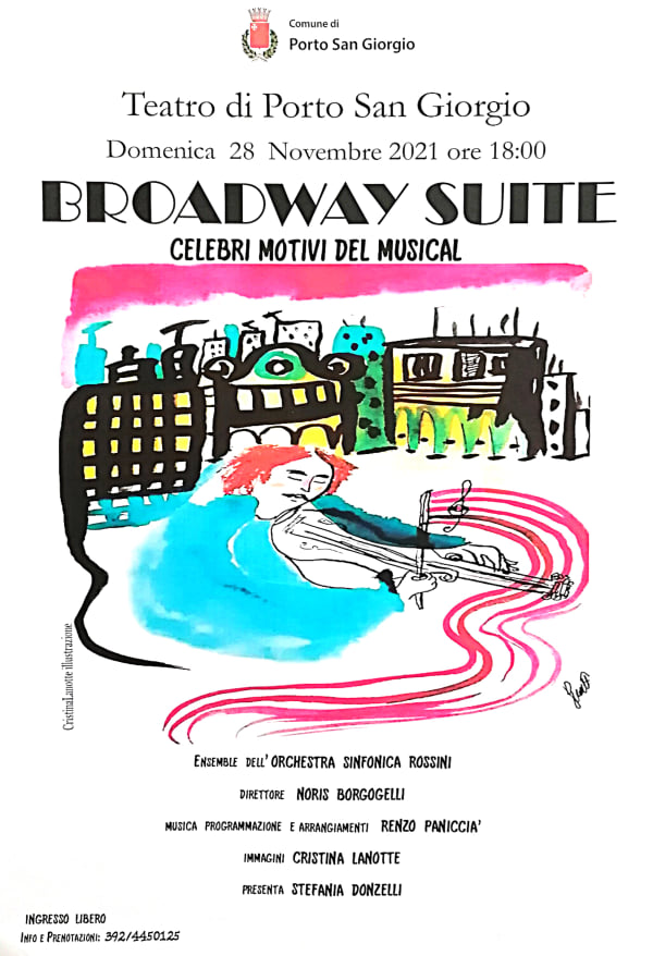 Domenica 28 novembre, ore 18:00, Teatro Comunale – Spettacolo BROADWAY SUITE MUSICAL. Celebri motivi del musical, a cura del maestro RENZO PANICCIA’. Ensamble dell’ORCHESTRA SINFONICA ROSSINI. Direttore NORIS BORGOGELLI. Immagini di CRISTINA LANOTTE. Presenta STEFANIA DONZELLI.