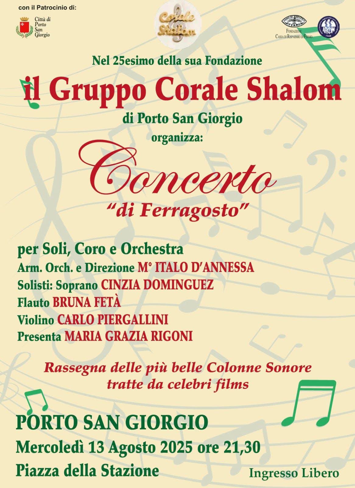 In occasione del 25° anniversario dalla sua fondazione, il Gruppo Corale Shalom vi invita a un’imperdibile serata musicale sotto le stelle! 🌟