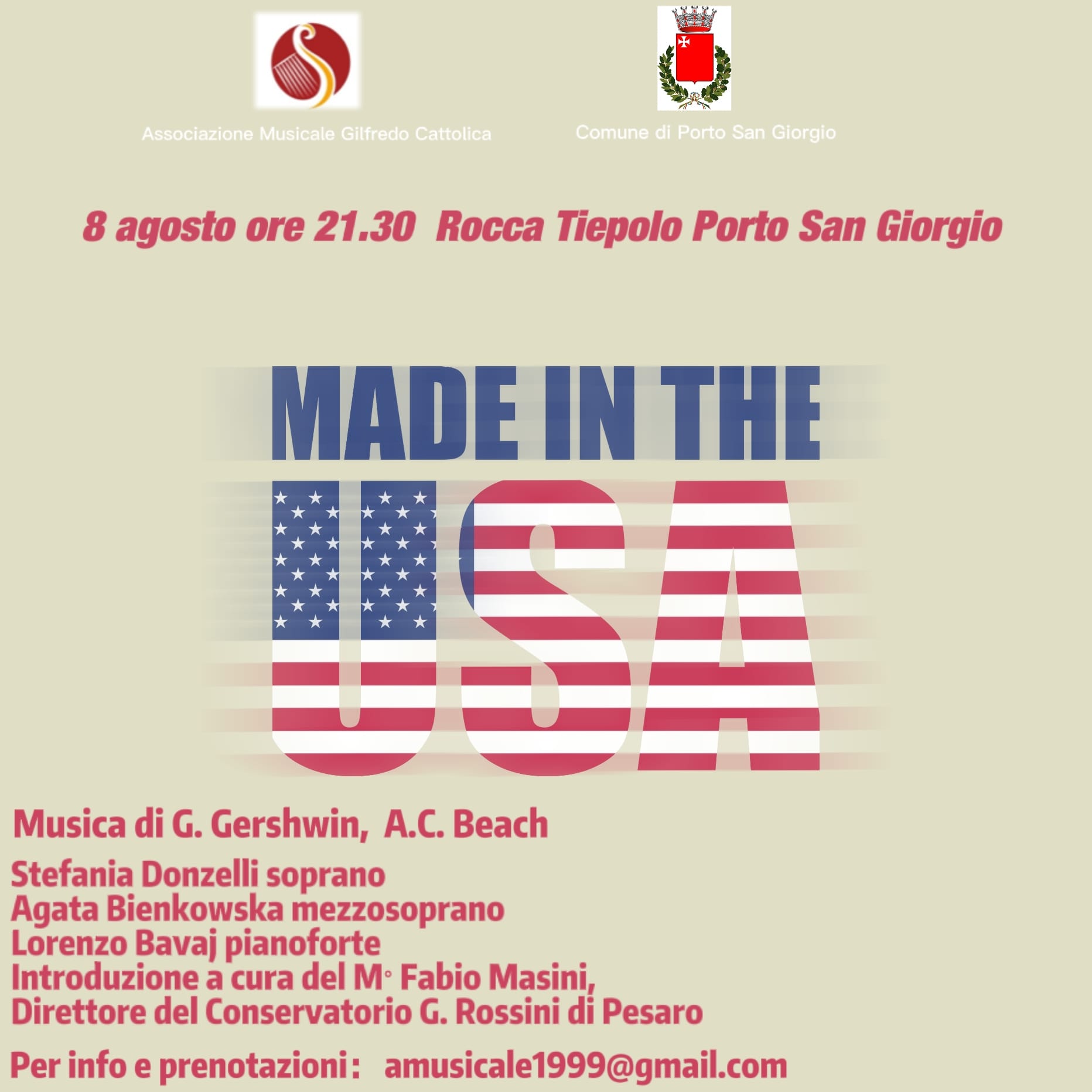 Rocca Tiepolo, ore 21.15, a cura dell’Ass.ne Gilfredo Cattolica, Made in USA, musiche di autori americani del ‘900, con Stefania Donzelli soprano, Agata Bienkowska mezzosoprano, Lorenzo Bavay pianoforte prenotazioni solo via email a amusicale1999@gmail.com, evento di riferimento, nome e cognome di ogni partecipante, numero di telefono.