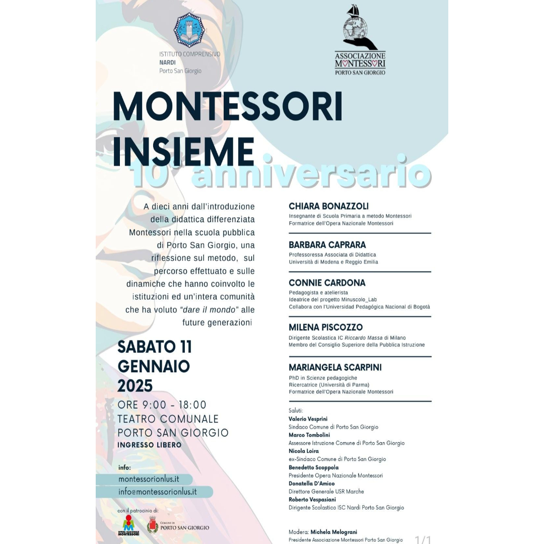 Maria Montessori . A dieci anni dall’introduzione della didattica differenziata Montessori nella scuola pubblica di Porto San Giorgio.
