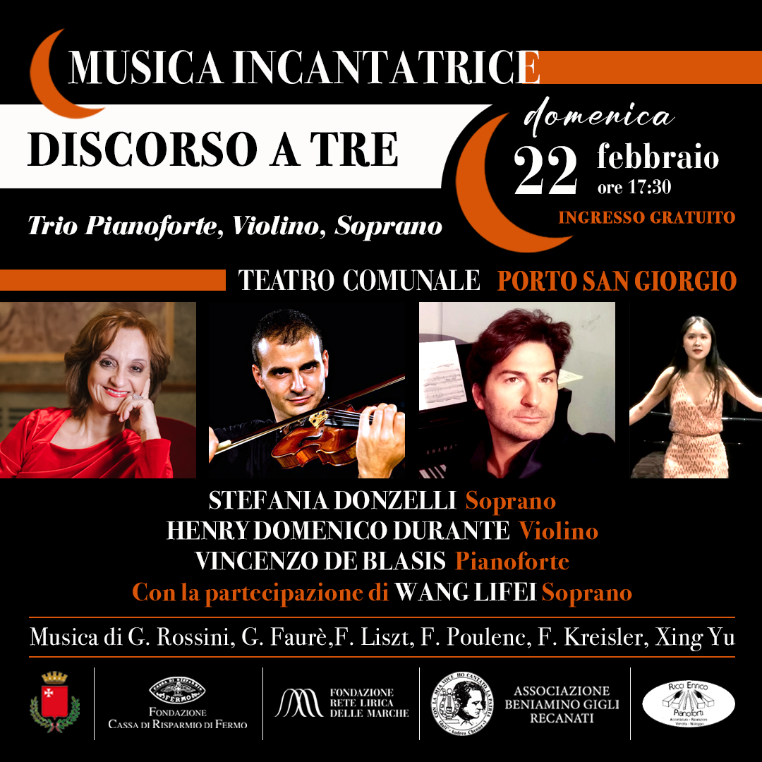 Domenica 22 febbraio, alle ore 17:30, vi aspettiamo a Porto San Giorgio per l’evento “Musica Incantatrice – Discorso a Tre”.