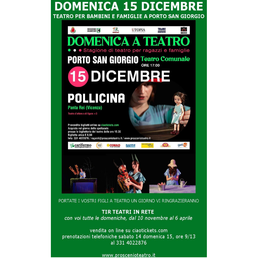 teatro d’attore, pupazzi animati, età consigliata a partire dai 4 anni;