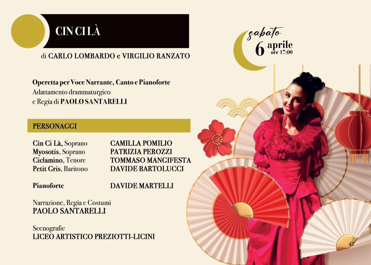 Ascolto guidato delle opere rappresentate in forma ridotta ed eseguita dal vivo da artisti in costume, con accompagnamento di pianoforte, narrazione, regia, costumi di Paolo Santarelli, scenografie Liceo Preziotti-Licini, in collaborazione con l’APS Compagnia Lirica Incontri d’Opera. Info 3924450125. Ingresso libero.
