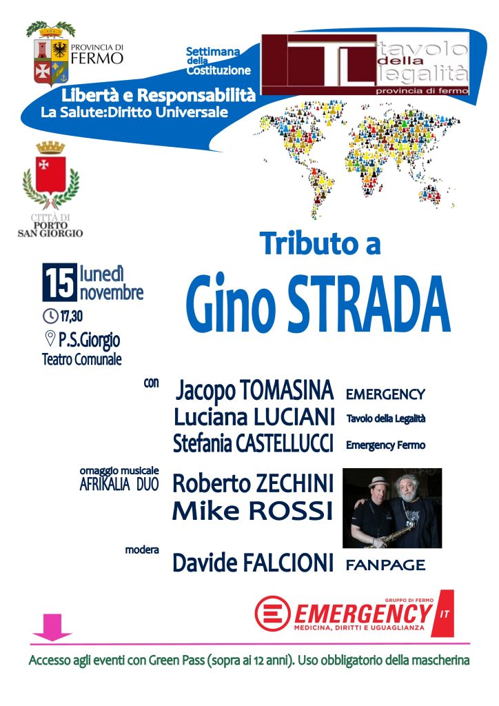 Lunedì 15 novembre, Teatro Comunale, ore 17:30 - per il Tavolo della Legalità Provincia di Fermo e con la collaborazione del gruppo Emergency di Fermo, tributo a Gino Strada.