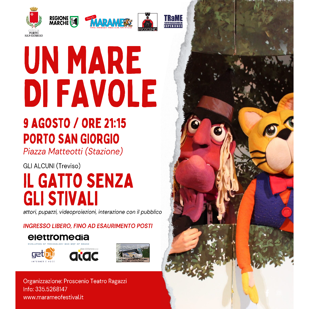 Un mare di favole - Il gatto con gli stivali Presso Piazza Matteotti, ore 21:30 Info: 3355268147 Ingresso libero!
