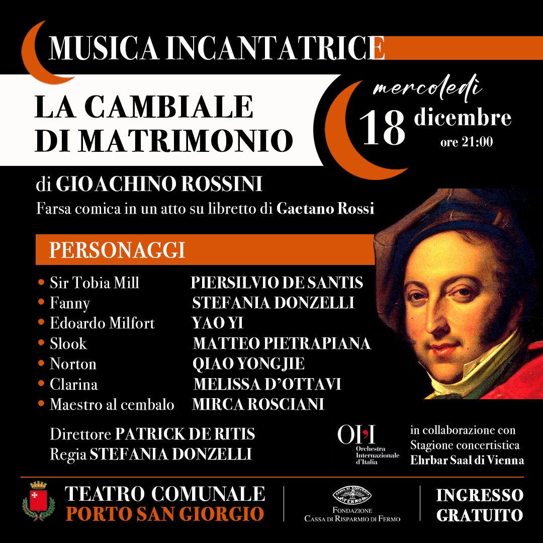 La cambiale di matrimonio di Gioacchino Rossini Mercoledì 18 Dicembre 2024 Ore 21.00 Presso il Teatro di Porto San Giorgio Ingresso gratuito