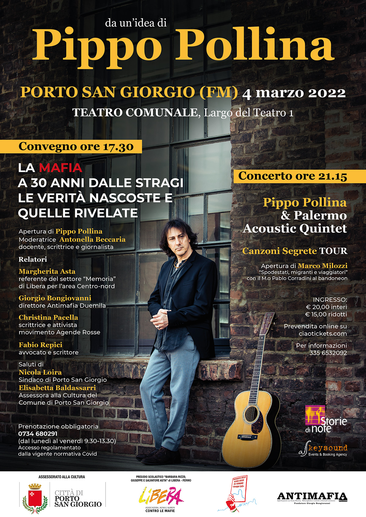 Si comunica che il convegno "La mafia a 30 anni dalle stragi, le verità nascoste e quelle rivelate", previsto per il 4 Marzo 2022 a Villa Bonaparte, è stato spostato al Teatro Comunale.