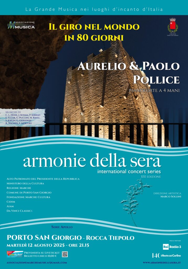Armonie della sera, international concert series, alla XXI edizione, propone martedì 12 agosto alle ore 21.15, alla Rocca Tiepolo di Porto San Giorgio, un insolito concerto […]