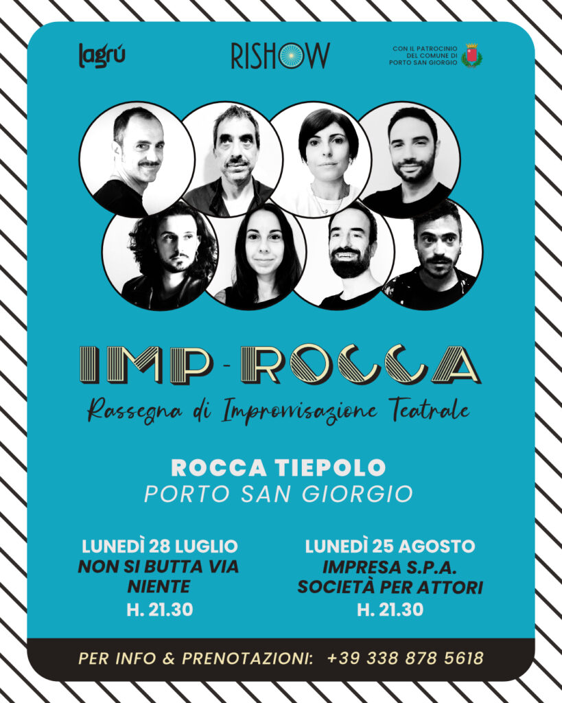 Torna la rassegna di improvvisazione teatrale Imp-Rocca dei RISHOW a Rocca Tiepolo a Porto San Giorgio organizzata da Lagrù in collaborazione con il Comune di Porto