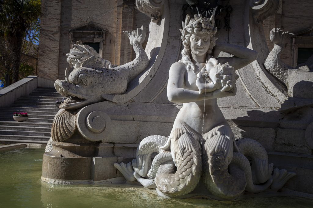 Edificata nel 1897 su progetto dell’architetto Alfonso Bernardini in occasione della costruzione dell’acquedotto cittadino. La fontana statuaria si compone di una vasca in travertino, dove si erge maestosa una figura femminile, immagine allegorica della democrazia.